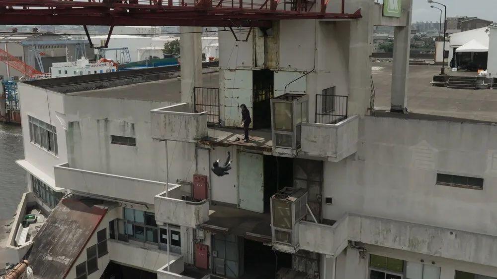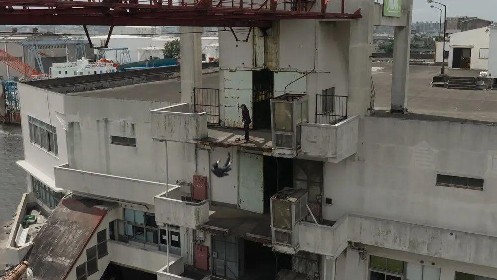 在另外一个镜头中,团队先使用无人机拍摄了特技演员坠落场景,之后从一个相近角度拍摄演员Lily Frankie倒在床垫上的场景,再进行了头部的替换处理。