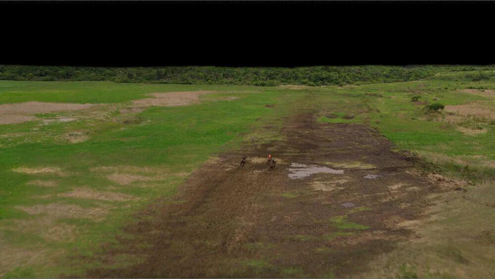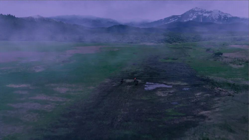 骑马在广阔土地上奔驰的镜头是通过matte painting和实拍素材合成制作的。