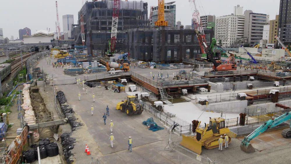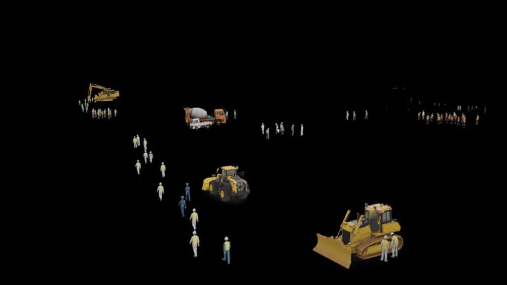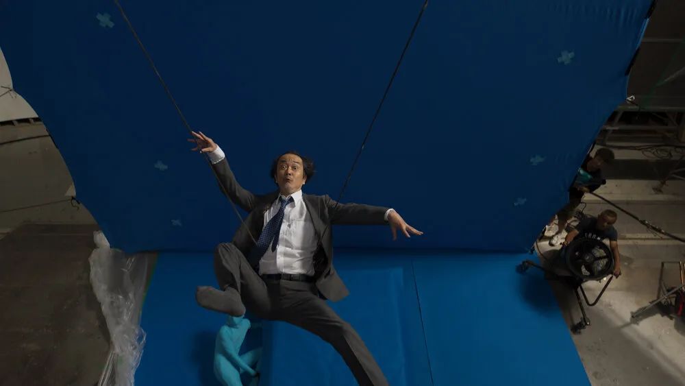 剧中有一处施工现场的镜头,这里出现的人群(包括大楼后侧,约250人)和几台重型机械都是通过CG添加的。