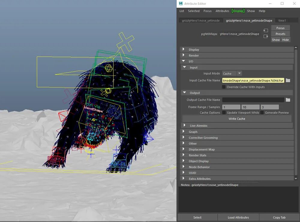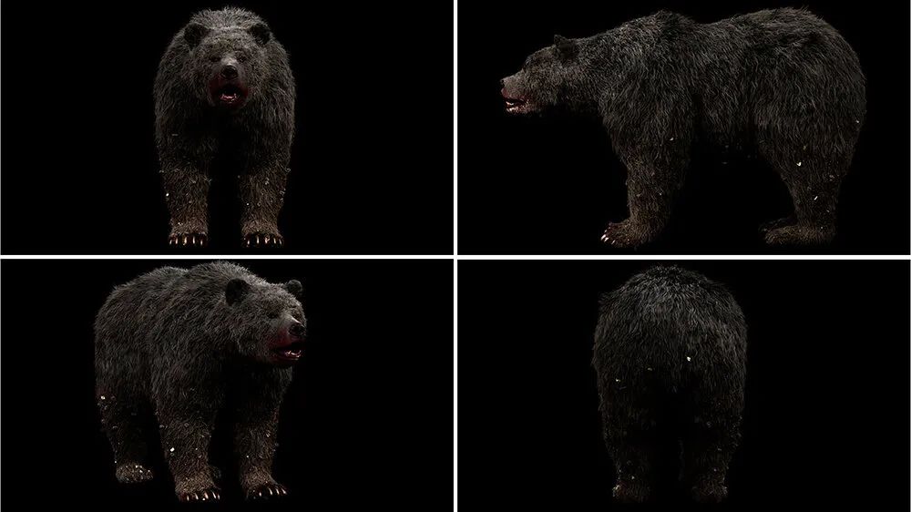为了让熊的动作看起来更加逼真,团队使用Ziva Dynamics进行肌肉模拟;用Yeti来做毛发模拟以增强真实外观,目标是达成电影《荒野猎人》中同样的效果。