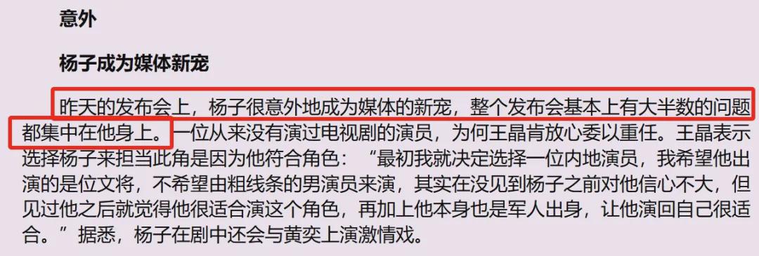 他需要的是带资进组,需要众星拱月,需要美女红袖添香,去扮演成自己期待中的杨子。