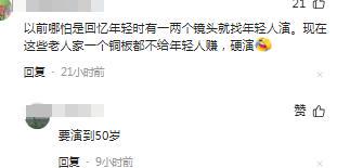 以前哪怕是回忆年轻时有一两个镜头就找年轻人演。现在这些老人家一个铜板都不给年轻人赚,硬演。