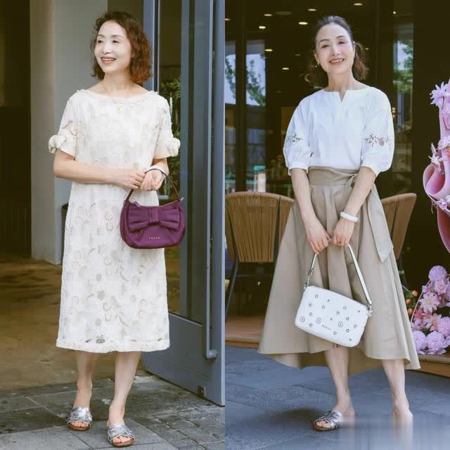 而50+女性再去尝试短裙多少有点突兀和不搭,可见,王馥荔深谙这个道理,因此过膝裙成为了她最钟爱的单品。