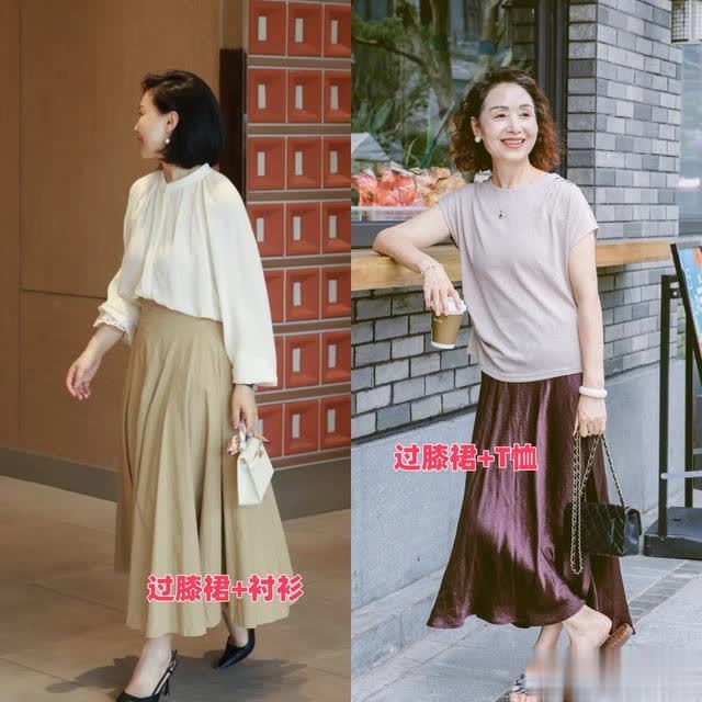 过膝裙不仅遮肉显瘦,而且自带优雅感,适合上了年纪的女性。过膝裙款式多种多样,能够轻松应对各个场合。