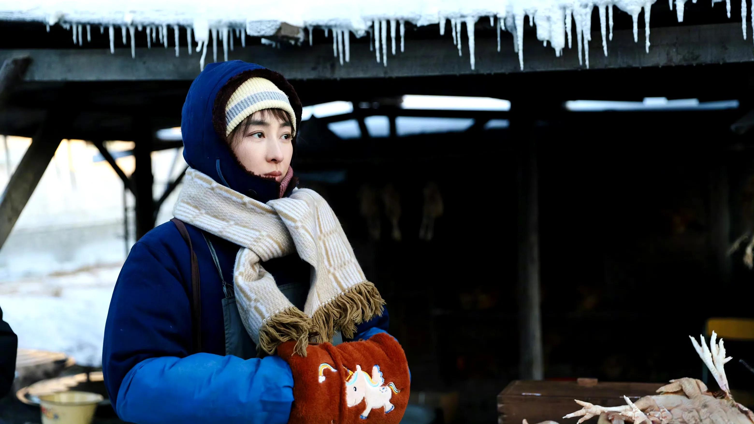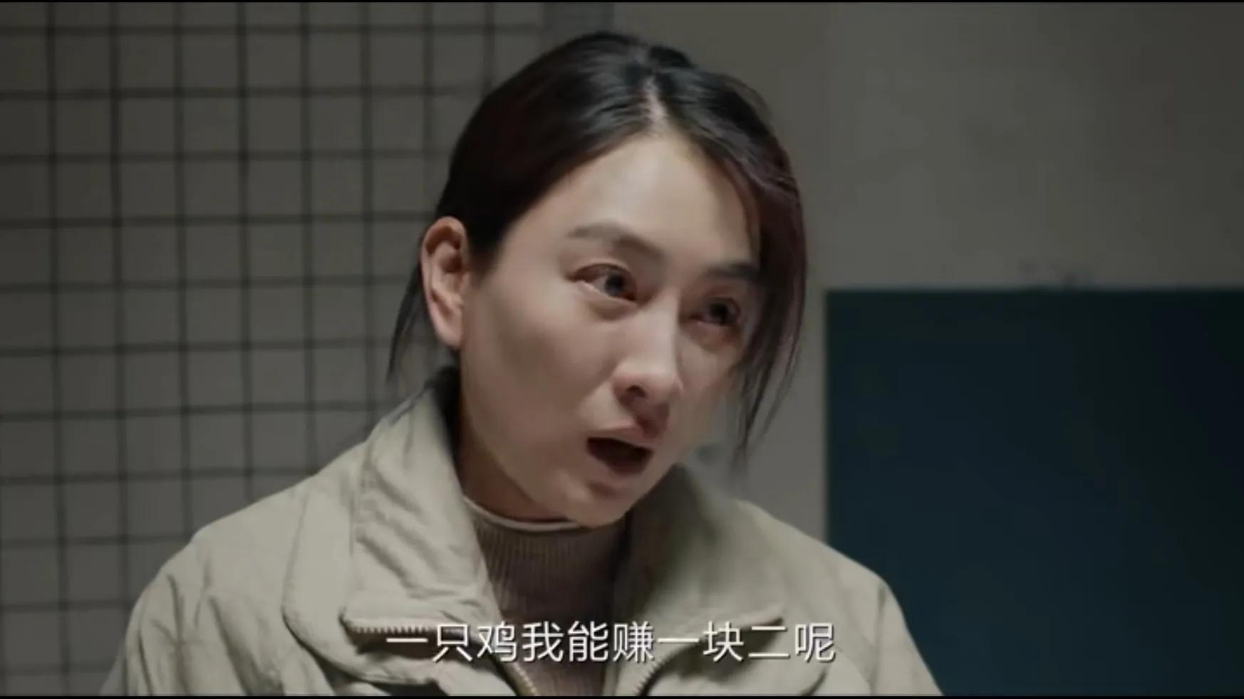 她穿着极为朴素,头发随意地束在脑后,显得有些凌乱;手上沾满了处理鸡肉的油腻,以及冻伤的冻疮。