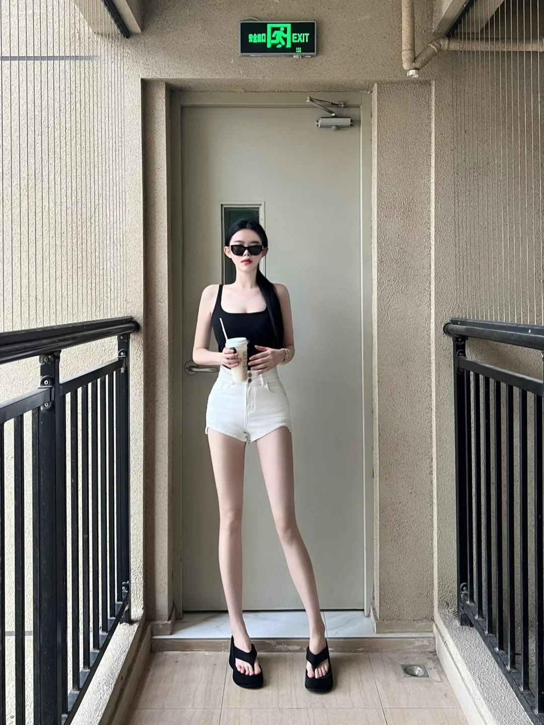 想要通过“吊带+短裤”的组合达到显瘦显腿长的效果,关键在于如何巧妙利用色彩、材质与版型的搭配,营造出视觉上的延伸感。