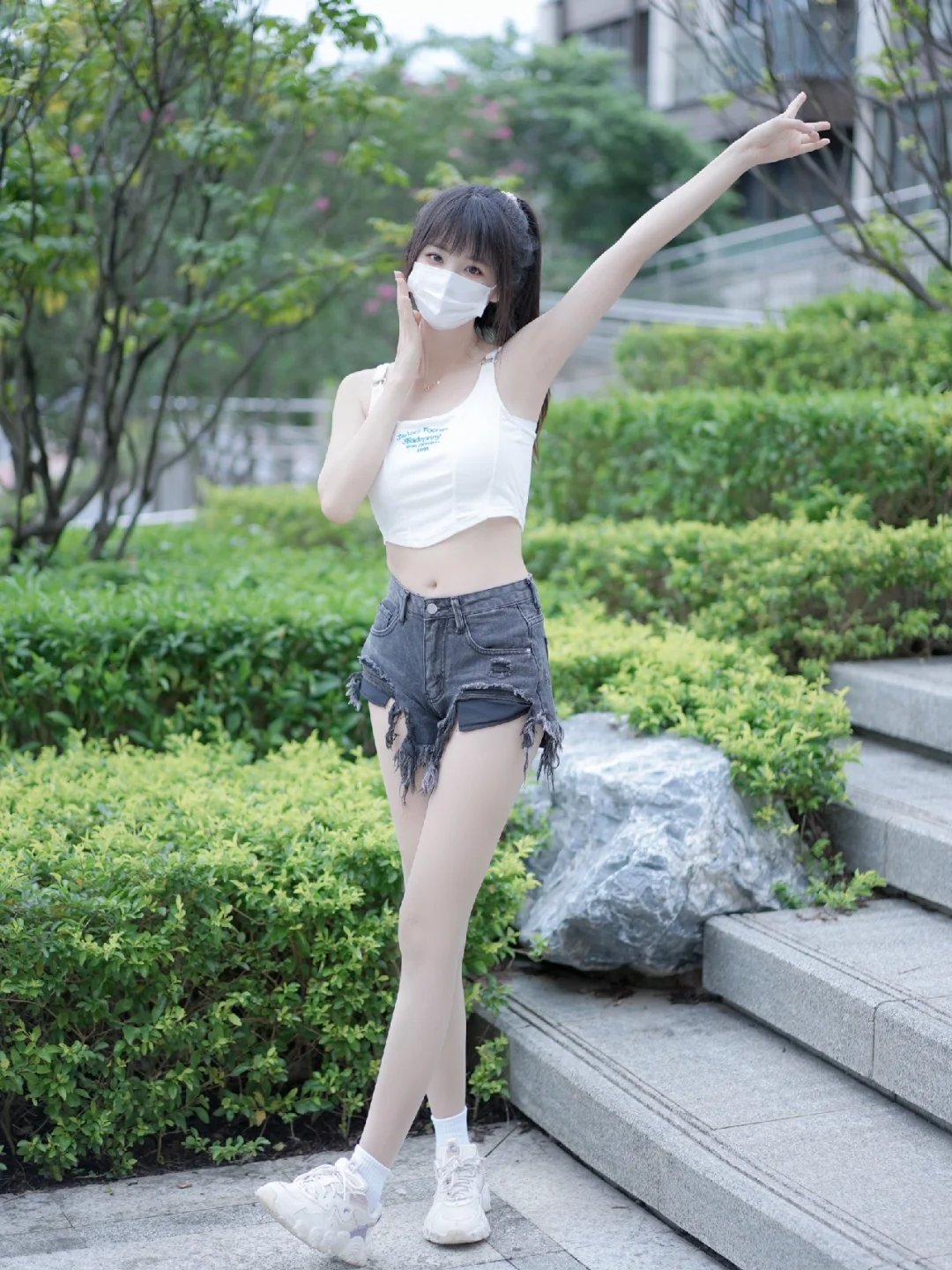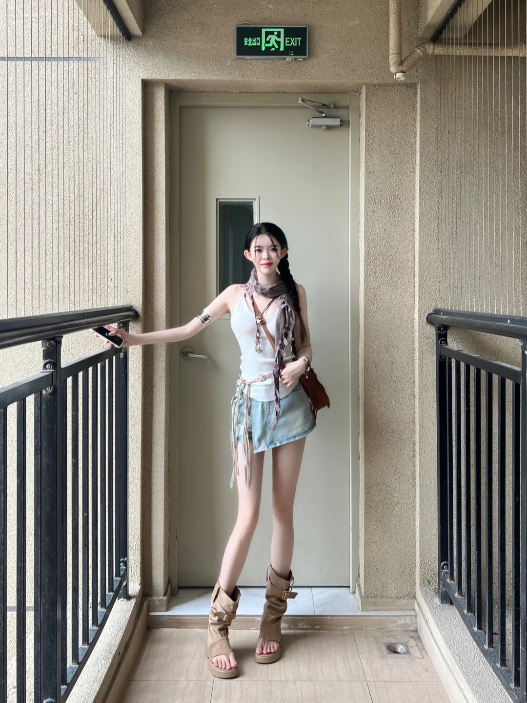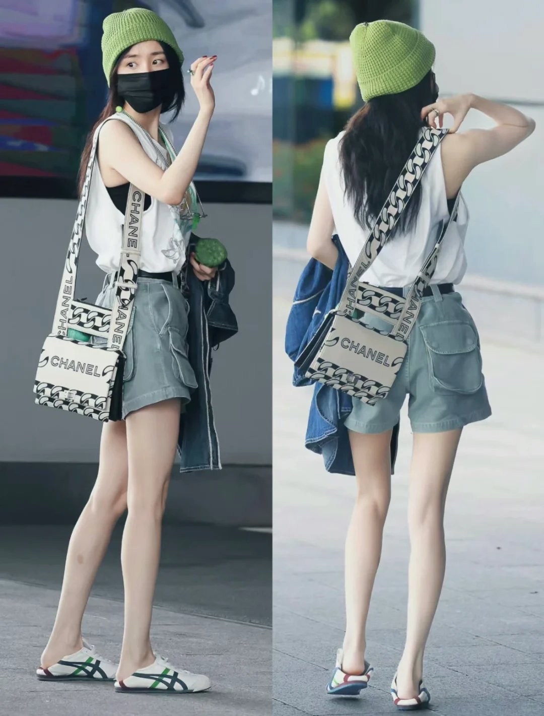 包包与鞋子:一款小巧的手拿包或斜挎包,既实用又能增添时尚感;鞋子方面,无论是简约的小白鞋、清凉的凉鞋还是复古的玛丽珍鞋,都能与“吊带+短裤”的组合完美搭配。
