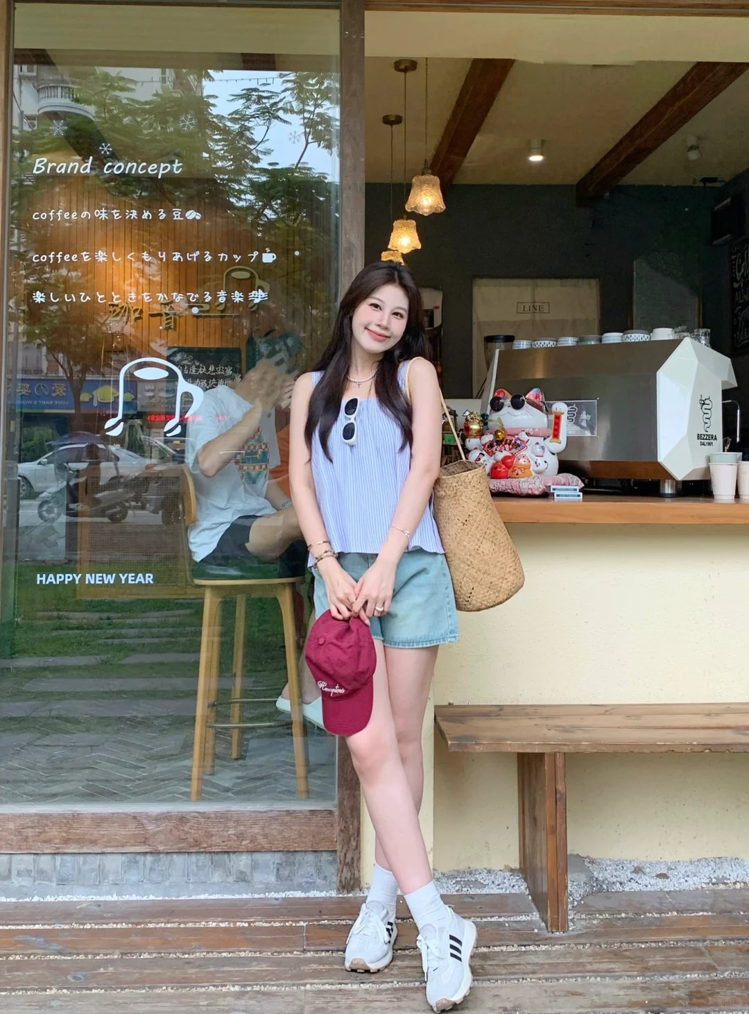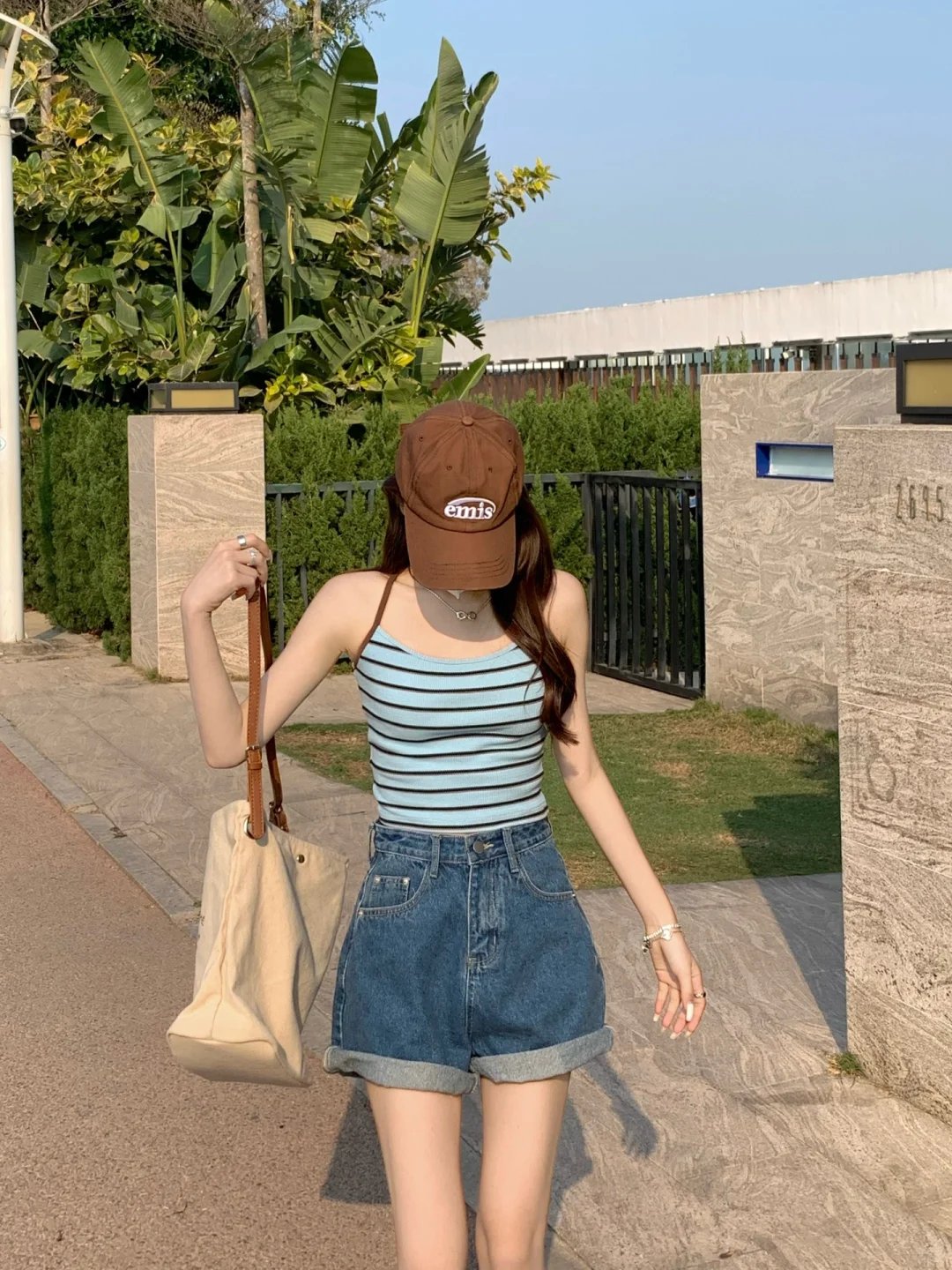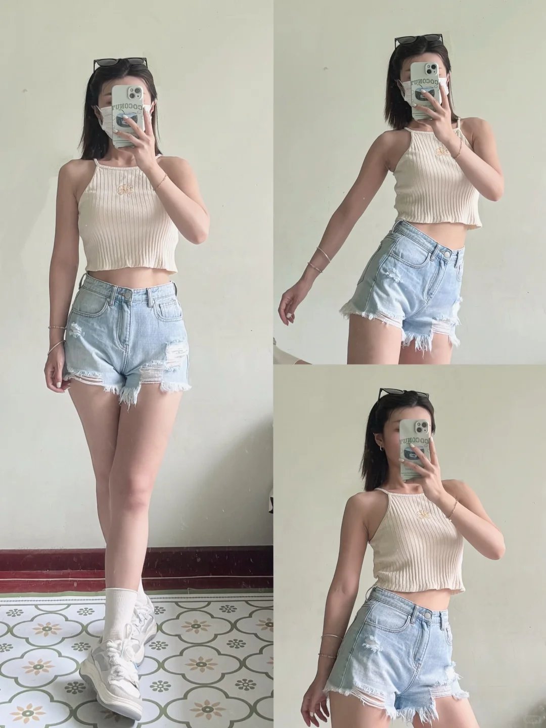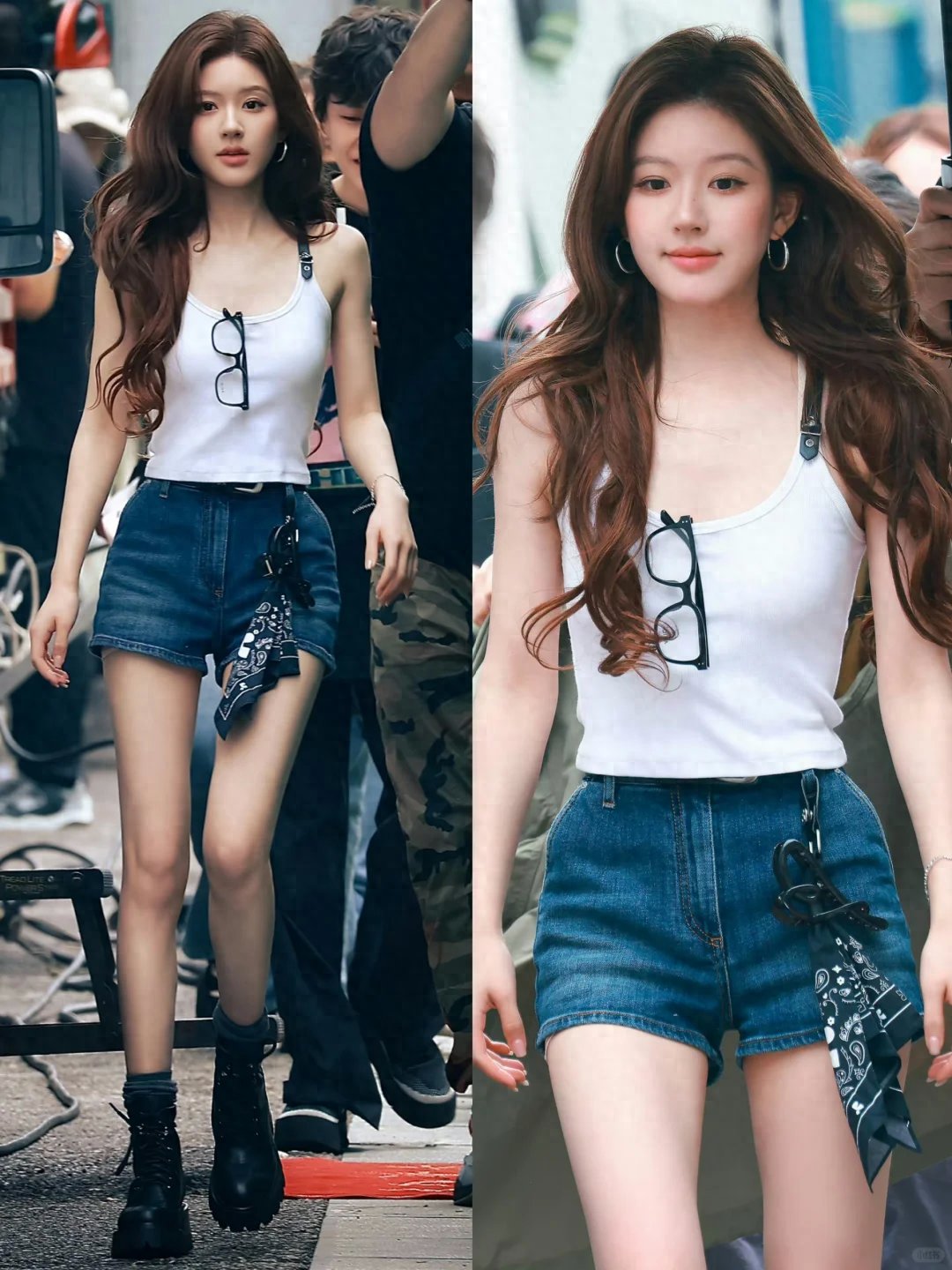 案例搭配:一条经典蓝色牛仔短裤,搭配黑色或白色基础款吊带,简约而不失时尚感。牛仔短裤的百搭性让它几乎能与任何颜色的吊带完美融合,轻松驾驭多种场合。若想要更加凸显腿长效果,可以选择高腰设计的短裤,搭配一双简约的白色运动鞋或凉鞋,既休闲又不失时尚感。