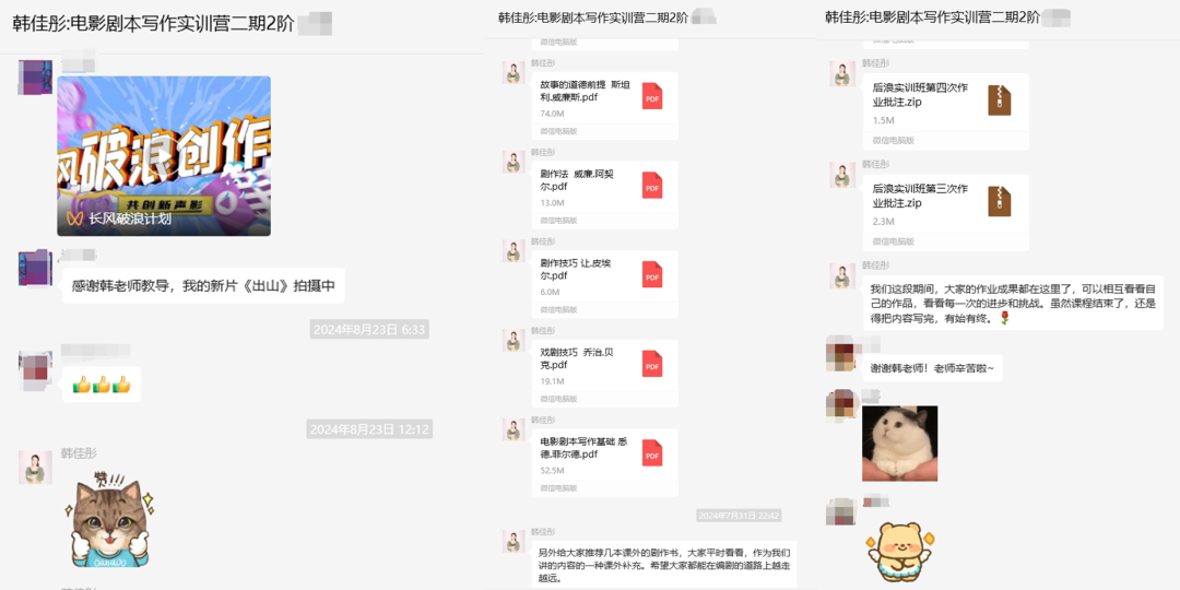 她的课,学员不止愿意上,还要追着学。上过她的课的老学员会在后台问, 有没有韩佳彤老师的新课。教过的学员里,有能力完成完整独立作品的已不在少数,有的已经是成熟的编剧,有的从事文案、编辑、撰稿人、创意相关工作。