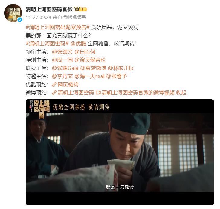 而这两部作品都是待播行列中最值得看的爆款预定,目前来看,两部作品更早与大家见面的,很有可能是《清明上河图密码》。