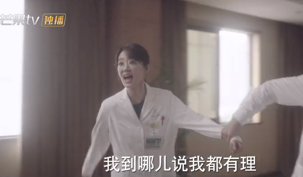 郝有嘉的讲述继续,电视剧场景切换到医院会议室。很难想象现实中会有这么炸裂的场面,基层的儿科医生,在全员大会上说其他医院比自己就职医院的技术和设备先进、成熟,很简单手术也开转诊单推给其他医院,被领导批评教育时反指责领导不懂救死扶伤没医德,被丈夫拉出去的时候,边走边和领导叫板。这样的人,在职场活不过半集吧?更何况又是在私立医院。