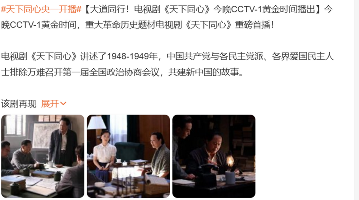 随着《西北岁月》的完美收官,令不少观众陷入了剧荒之际,就在大众还在回味《西北岁月》精彩剧情之际,央视又开始默默放大招了,《天下同心》将于12月2号在央视一套黄金档与大家见面,也就是央视今晚开播!演员阵容不俗,看清导演,网友;又一革命剧要火了。