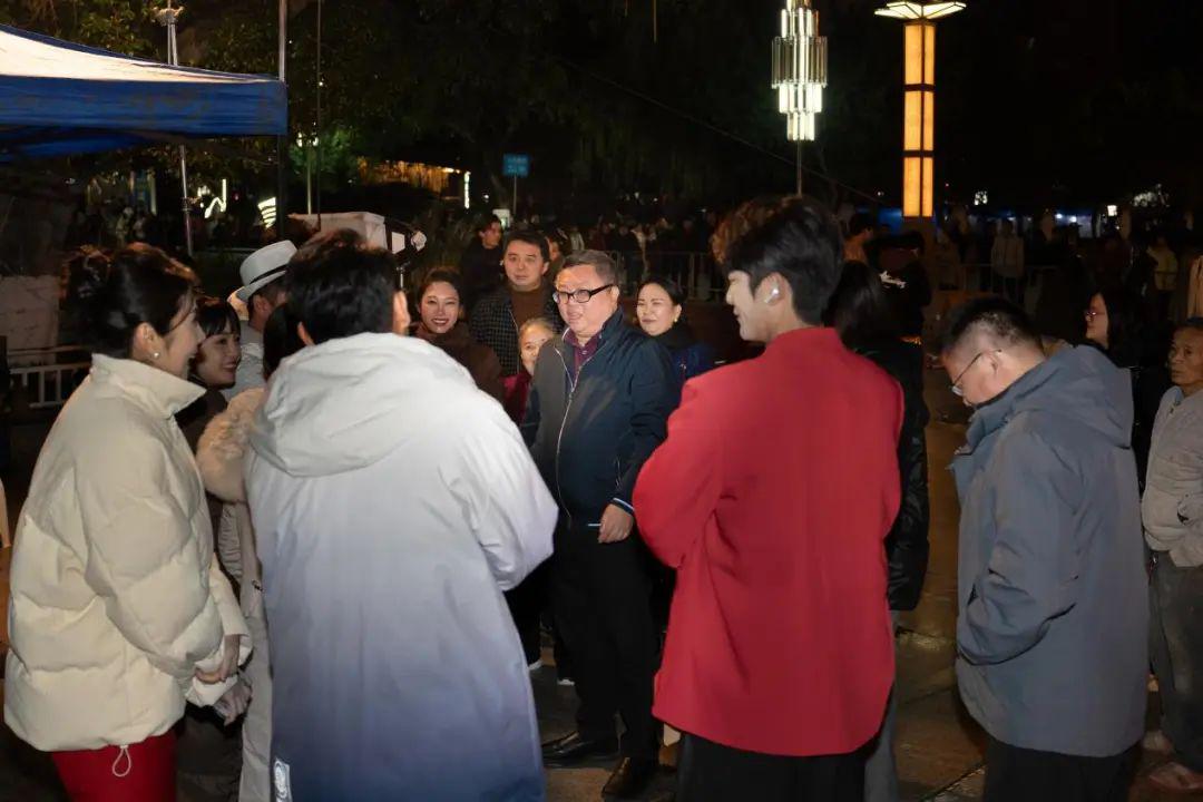 重庆广播电视集团(总台)党委委员、副总编辑余季波与中共遂宁市委宣传部、中共重庆市潼南区委宣传部、中共射洪市委宣传部领导一行也来到了拍摄现场,感受“村晚”大戏氛围,看望慰问剧组成员。