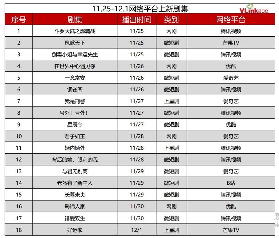 上周,各大平台共有18部新剧上线,其中上星剧3部,网剧4部,微短剧11部。在这些剧集里,上星剧《我是刑警》《好运家》《婚内婚外》,网剧《蜀锦人家》等剧,均有着较高期待值。