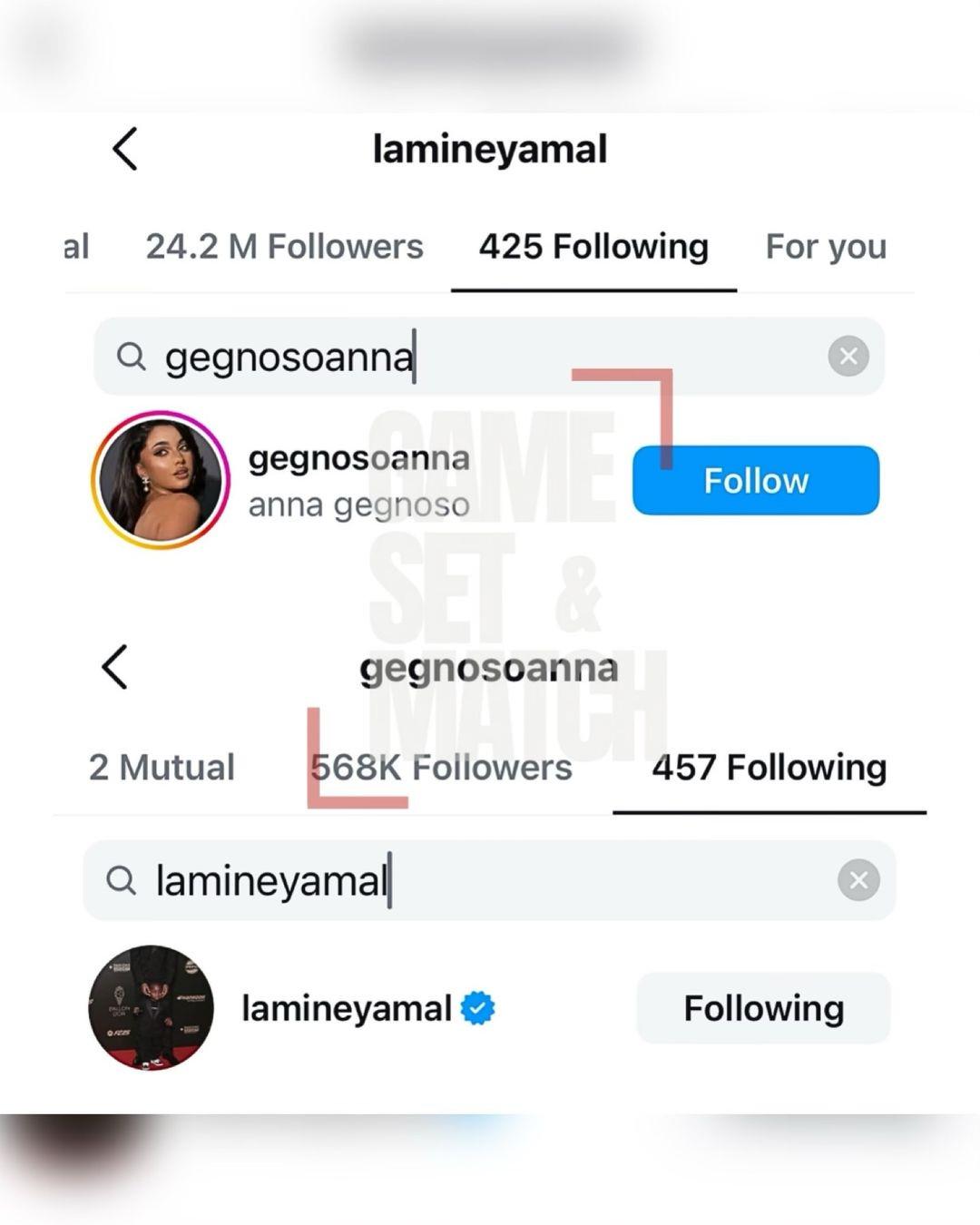 在对阵拉斯帕尔马斯的比赛结束后,社交媒体上有视频流传,亚马尔和19岁的网红兼模特安娜-格尼诺索(Anna Gegnoso)一同出行。