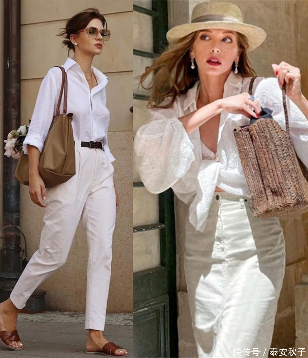 首先,咱们可以看到图中这两位美女博主,利用了夏季里常见的T恤衫款式,穿出了气质女人的精致和讲究。