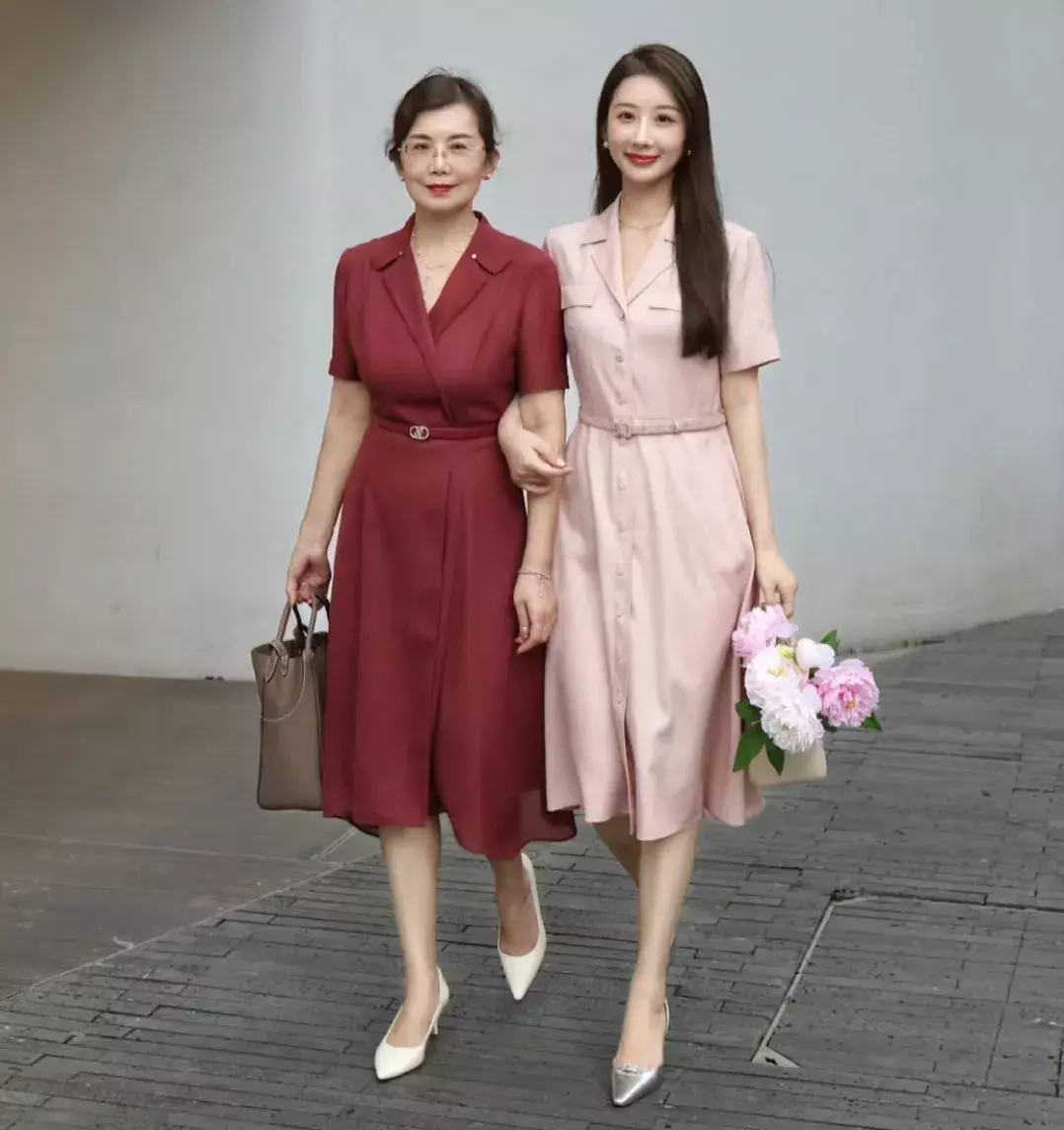 收腰连衣裙能够优雅地展现中年女性的身形曲线,同时带有收腰设计可以有效遮盖腰部的赘肉,塑造出更好的体态和轮廓。