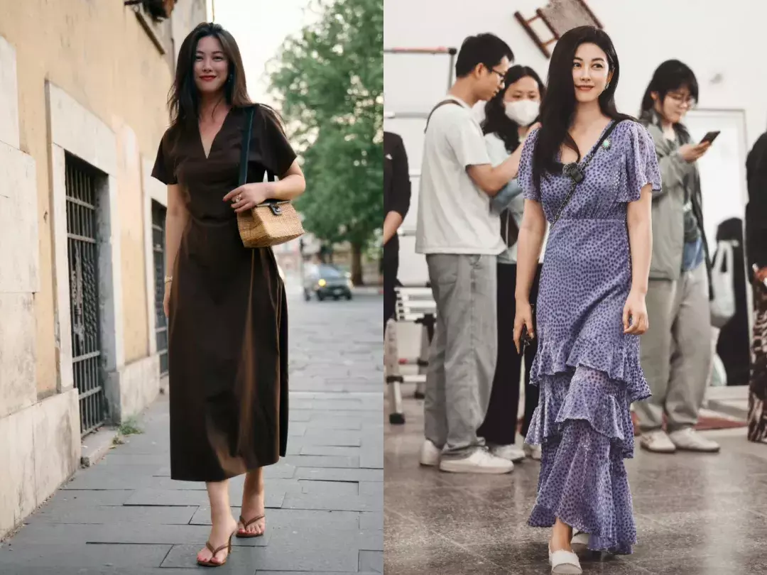 对于咱们中年女人来说,连衣裙颜色的选择很重要,我们可以选择比较衬肤色的颜色。