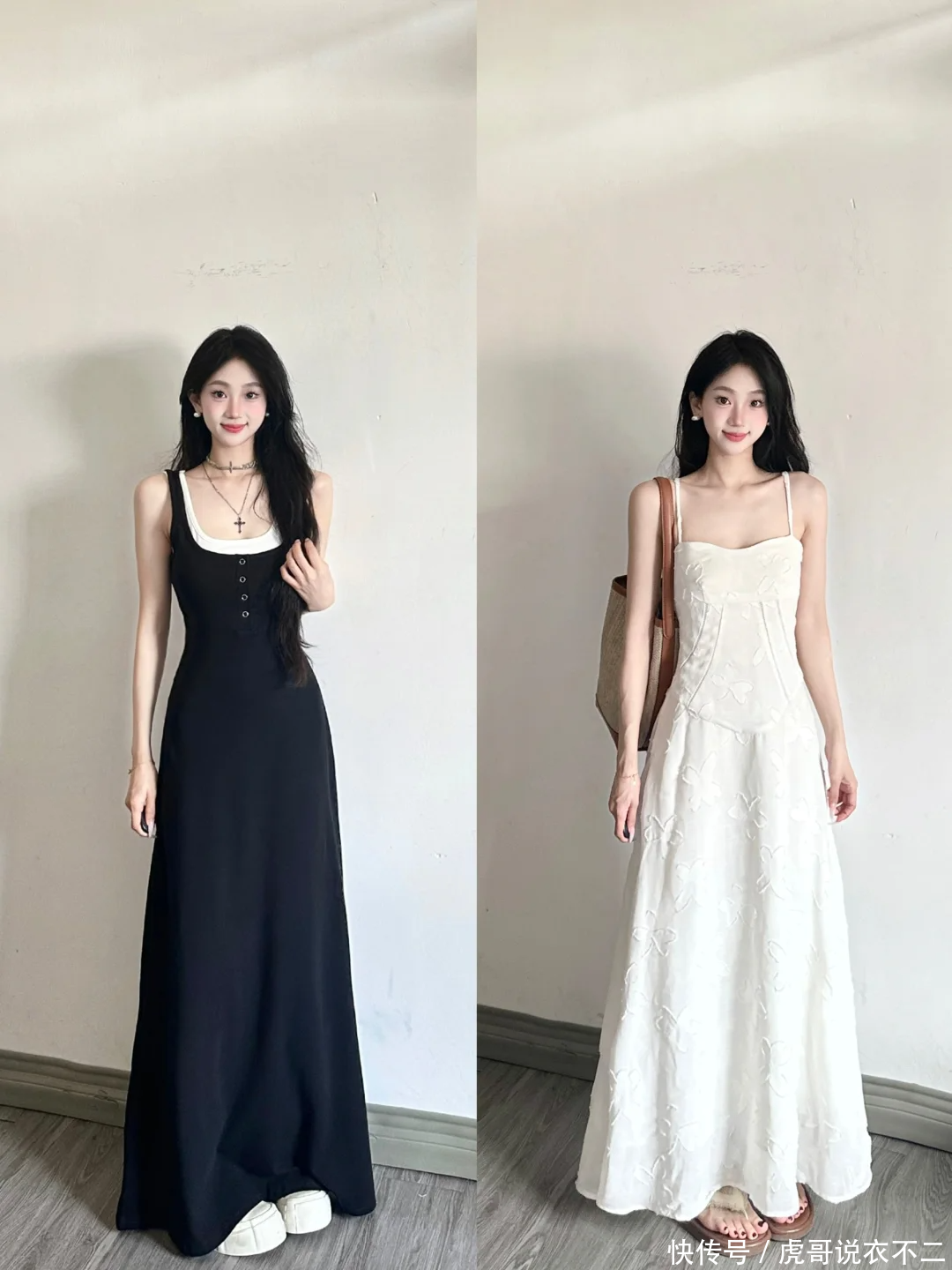 穿搭案例:夏日炎炎,一条简约的吊带裙能瞬间带来清凉感。选择细肩带设计,能够完美展现你的锁骨与肩颈线条,若是担心过于暴露,可以内搭一件轻薄的针织衫或透视衬衫,既保留了性感又不失含蓄。