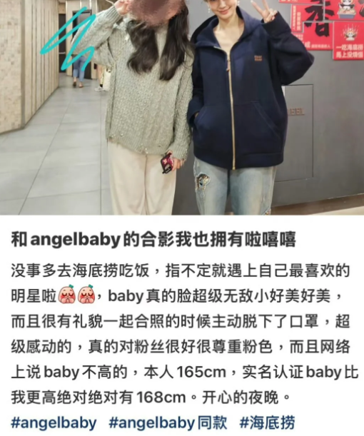 这边还有网友在社交平台上发出,在香港海底捞偶遇Angelababy。