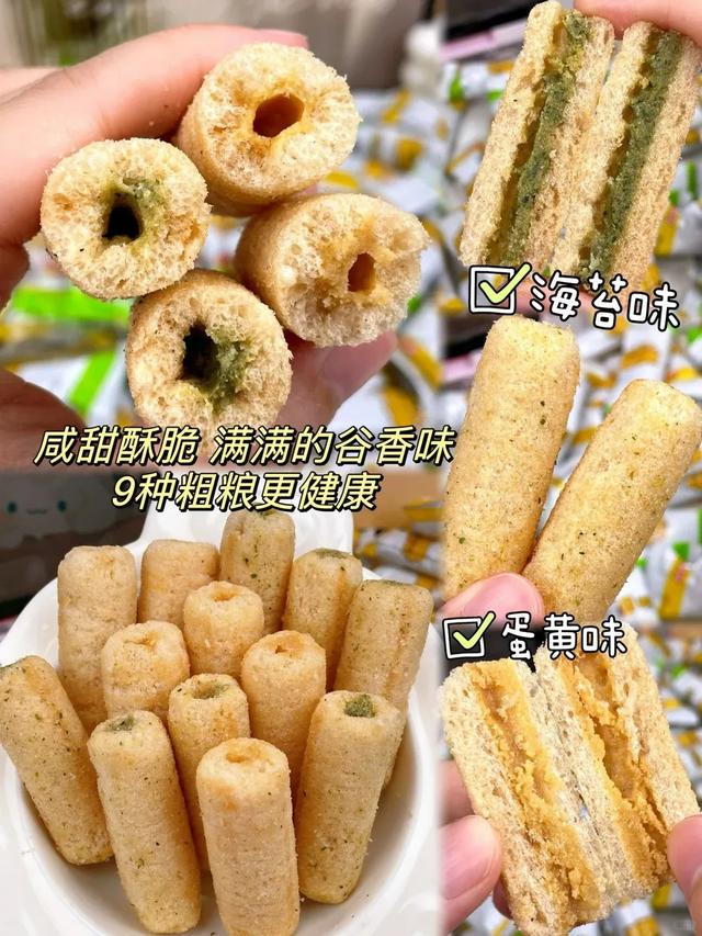 它吃起来是那种酥酥的口感,一口下去满嘴谷香味,感觉不用嚼都能化开。中间是不同口味的夹心,有淡淡的咸味,不会觉得腻,两口就能吃完一根。