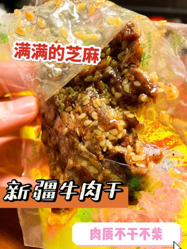 它有点像炒出来的牛肉,是偏湿润的,每块牛肉上都裹了芝麻和满满的酱料,吃起来一点也不干,纯瘦肉加一点点牛筋,嚼起来贼过瘾!